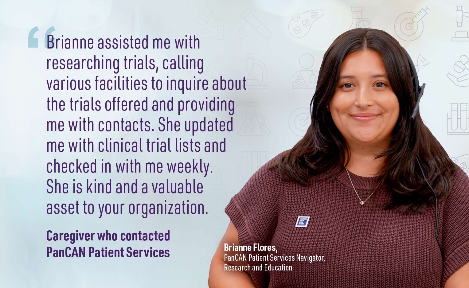 PanCAN Patient Services is here to help every step of the way! No matter what you need, from preparing and searching for clinical trials to enrolling in one, our team can get you on the Right Track.