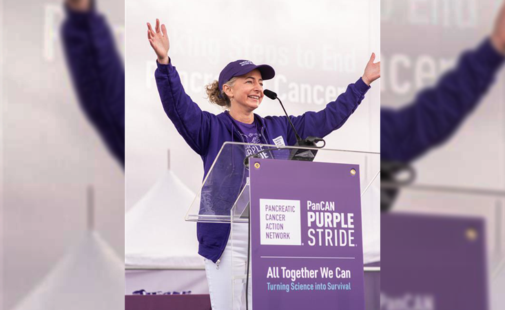 President and CEO of PanCAN, Julie Fleshman, talked about the new campaign to the thousands of participants at PurpleStride Los Angeles. “It is my honor to be with you today, celebrating with this community. Like so many of you, today is very personal to me – it’s a day that I walk in memory of my own father who passed away in 1999, just four months after he was diagnosed.” She added, ”PanCAN has always led the way and our bold campaign is no different. We are on the threshold of a new era of treatments for patients thanks to years of investment in research and advocacy. Every dollar we raise, including the money you’ve raised for PurpleStride, will go directly toward our ambitious $250M goal. We need to keep this momentum up. This is just the beginning!”