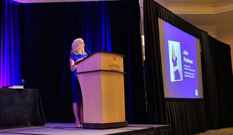 At a ceremony last night, Julie Fleshman, JD, MBA, president and CEO of the Pancreatic Cancer Action Network (PanCAN), was honored with the 2017 Distinguished Service Award on behalf of the American Pancreatic Association (APA), presented at their annual meeting. The award, created in 2011, recognizes those who have given their time and talents to the APA and to the field of pancreatic diseases at large.
