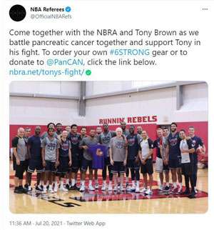 The National Basketball Referees Association joined forces with PanCAN to raise awareness and critical research funding for patients like Brown and the nearly 61,000 other Americans expected to be diagnosed this year. A Wage Hope My Way fundraising page created to support Brown is central to the fundraising effort.