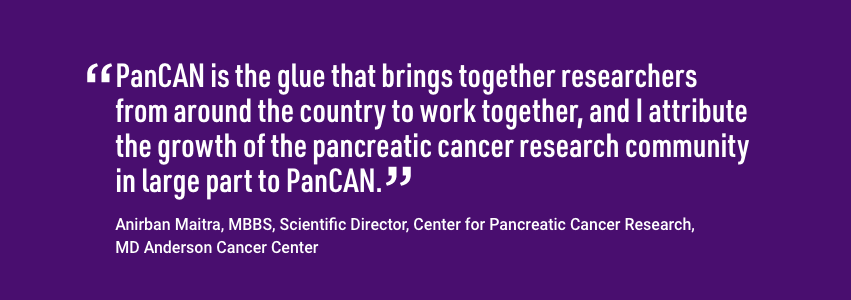 PanCAN is leading large-scale, groundbreaking research initiatives that will be the catalyst for transforming the way pancreatic cancer is detected and treated. No single pancreatic cancer organization has taken on such a comprehensive approach. As an unbiased stakeholder, PanCAN is uniquely positioned to bring together the nation’s key thought leaders and experts in pancreatic cancer research to help patients thrive.