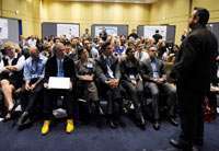 ![]() Cosimo Commisso, PhD, recipient of the 2011 Samuel Stroum – Pancreatic Cancer Action Network – AACR Fellowship Grant speaks to a crowded room at the poster/discussion session. © AACR 2012/Todd Buchanan |