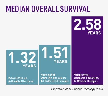 Every pancreatic cancer patient is different. Patients who receive treatment based on their biology can live longer. The Pancreatic Cancer Action Network strongly recommends all pancreatic cancer patients get genetic testing for inherited mutations as soon as possible after diagnosis and biomarker testing of their tumor tissue to help determine the best treatment options.